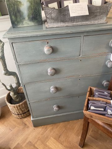 Gorgeous English old pine two over three chest of drawers with original handles. Just a fabulous colour 💙